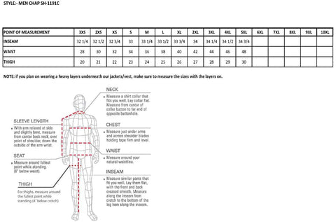 Made of Premium Buffalo 1.3-1.4mm Thick LeatherDual Sided Zipper and Snap Double Thigh Storage PocketsFully Lined with Soft Mesh LiningInner Thigh Stretch Panel for Optimal FitGenuine Covered YKK Zippers – (Known for Longevity and Durability) Four Snap BottomAdjustable Belt BuckleAdjustable Back LacesUnhemmed - Cut to Your HeightMilwaukee Leather - Once You Have It, You Love It