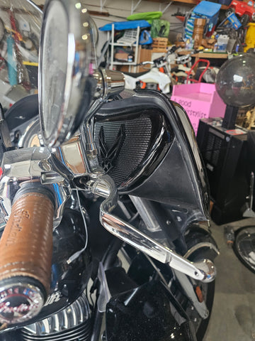 Introducing our revolutionary 3D speaker covers that seamlessly accommodate speakers of all sizes. Each cover is meticulously crafted to order, tailored exclusively for you, with a production timeline of approximately three weeks. Personalize your experience with a spectrum of color combinations, and we cater to any bike's year or make. Order verification ensures precision before production.