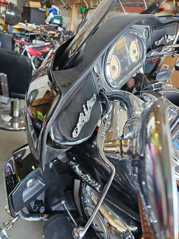 Introducing our revolutionary 3D speaker covers that seamlessly accommodate speakers of all sizes. Each cover is meticulously crafted to order, tailored exclusively for you, with a production timeline of approximately three weeks. Personalize your experience with a spectrum of color combinations, and we cater to any bike's year or make. Order verification ensures precision before production.