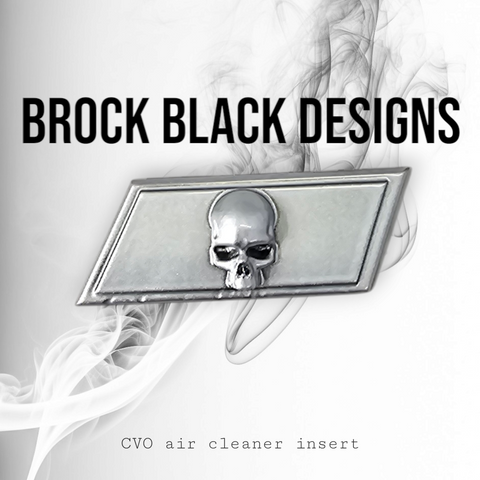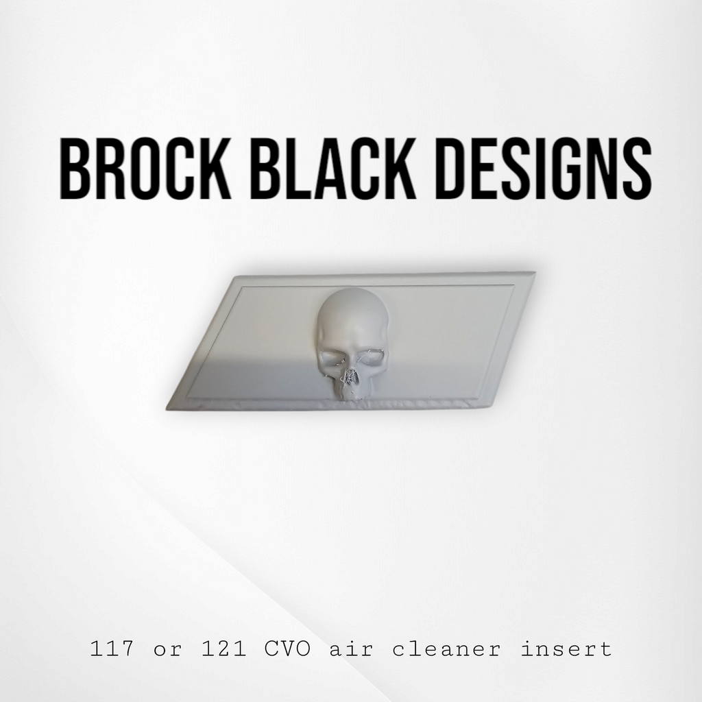 Custom built Harley 117 or 121 air cleaner insert with 3D ancient skull theme. Can do any design, color combination or style of bike. These are individually built and designed for the customer. These take about 3 weeks to build. We will verify information after the order is placed. Contact us if you have any questions or special requests. Approximately measurements 1.5" tall x 3.75" wide