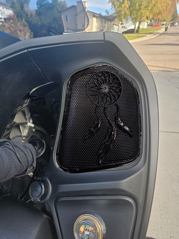 Introducing our revolutionary 3D speaker covers that seamlessly accommodate speakers of all sizes. Each cover is meticulously crafted to order, tailored exclusively for you, with a production timeline of approximately three weeks. Personalize your experience with a spectrum of color combinations, and we cater to any bike's year or make. Order verification ensures precision before production.