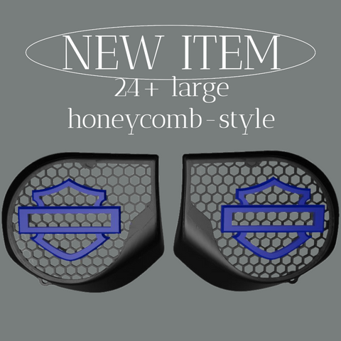 Introducing our revolutionary 3D speaker covers that seamlessly accommodate speakers of all sizes. Each cover is meticulously crafted to order, tailored exclusively for you, with a production timeline of approximately three weeks. Personalize your experience with a spectrum of color combinations, and we cater to any bike's year or make. Order verification ensures precision before production.