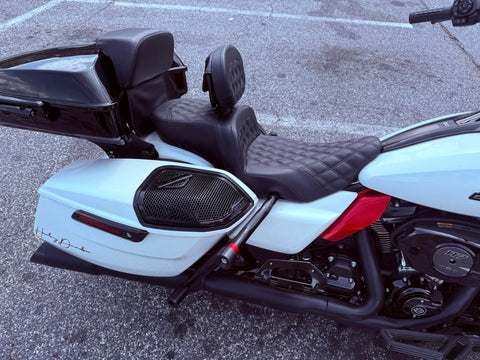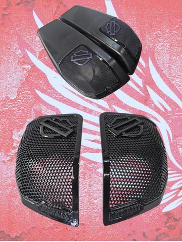 Introducing our revolutionary 3D speaker covers that seamlessly accommodate speakers of all sizes. Each cover is meticulously crafted to order, tailored exclusively for you, with a production timeline of approximately three weeks. Personalize your experience with a spectrum of color combinations, and we cater to any bike's year or make. Order verification ensures precision before production.