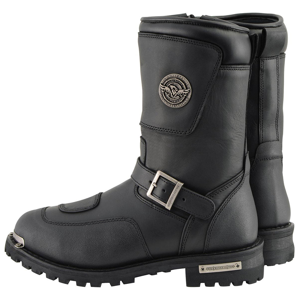 Milwaukee Leather MBM9070 Men’s Black Engineer Boots with Reflective Piping and Gear Shift Protection
