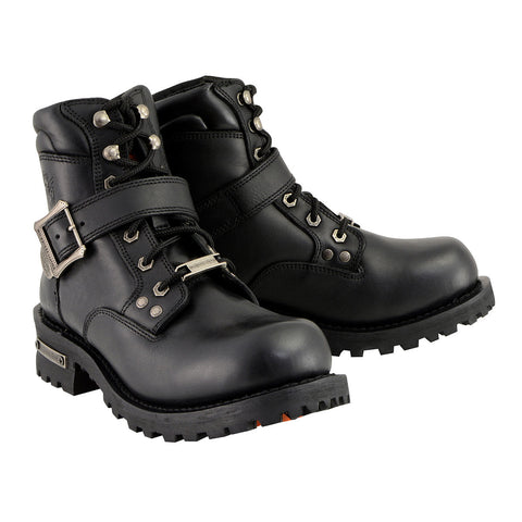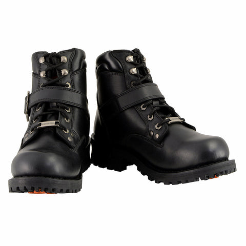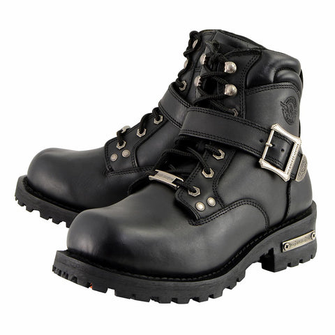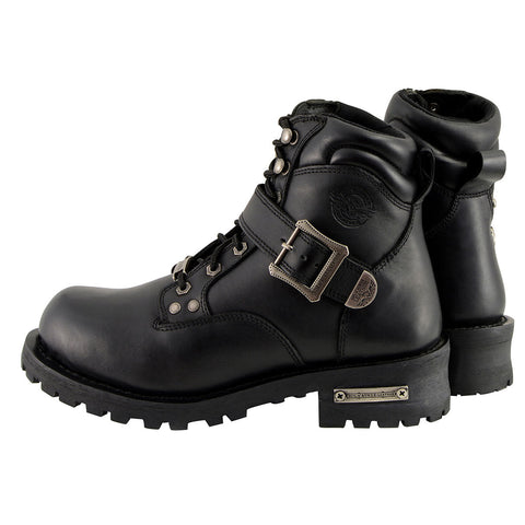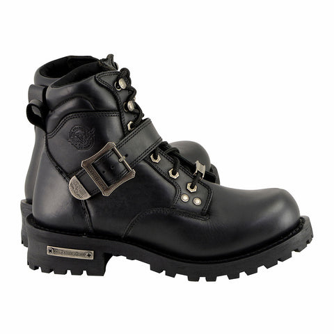 Milwaukee Leather MBM9010W Men's Black 'Wide-Width' Lace-Up 6-inch Engineer Boots with Side Buckle