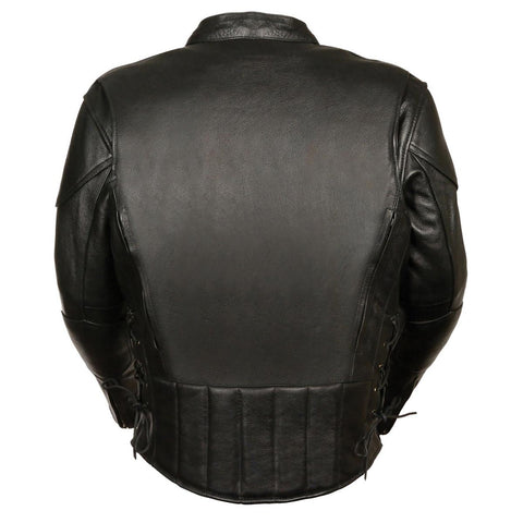 M-Boss Motorcycle Apparel BOS11511T Men’s ‘Speed’ Big and Tall Black Cowhide Motorcycle Leather Jacket