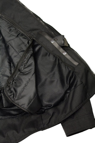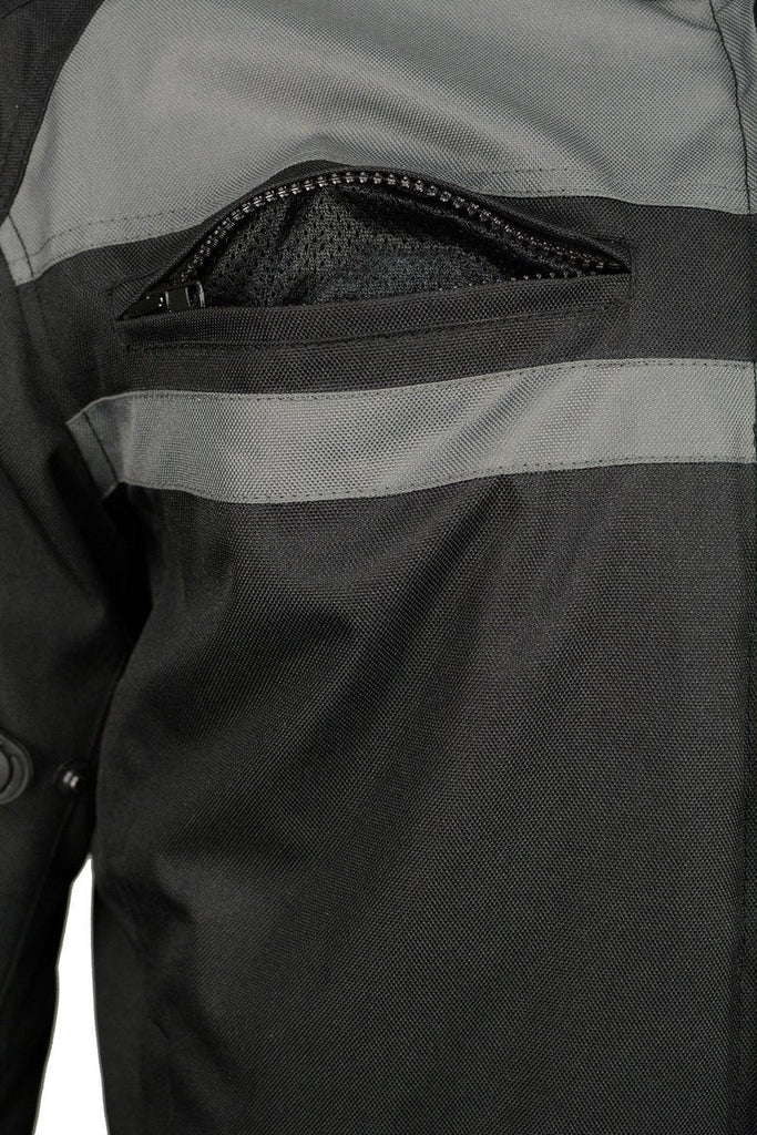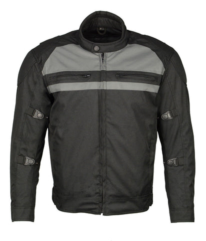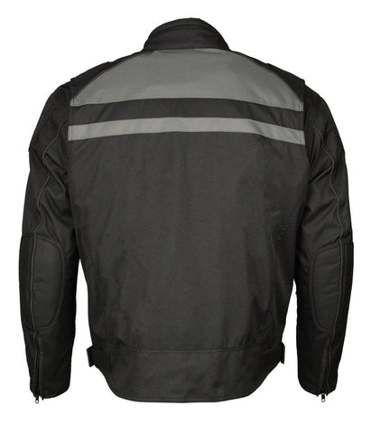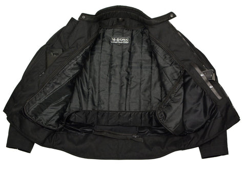 M Boss Motorcycle Apparel BOS11700 Men's Black Nylon Motorcycle Racer Riding Jacket with Reflective Piping