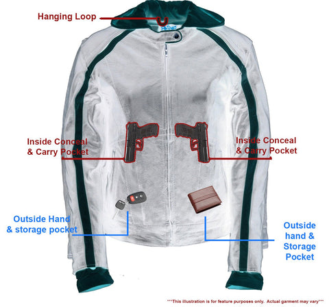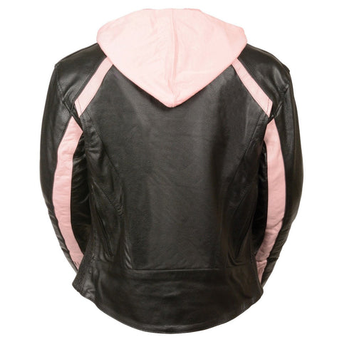 Milwaukee Leather SH1951 Women's Black and Pink Striped Leather Jacket with Zip-Out Hoodie