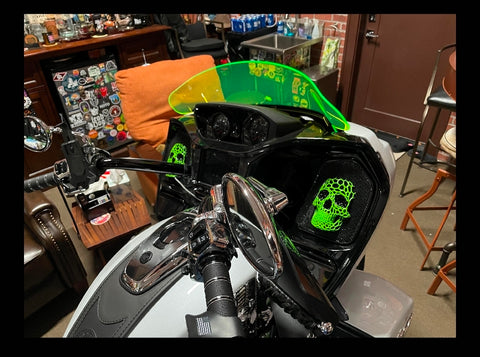 Introducing our revolutionary 3D speaker covers that seamlessly accommodate speakers of all sizes. Each cover is meticulously crafted to order, tailored exclusively for you, with a production timeline of approximately three weeks. Personalize your experience with a spectrum of color combinations, and we cater to any bike's year or make. Order verification ensures precision before production.