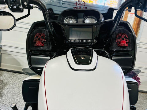 How to build your own speaker grills with your chosen design. The main image will stay the same unless customer has a special request. Fits: 2019–2025+ Indian Challenger / Pursuit and may fit other models with this grill shape.