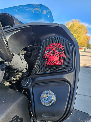 Introducing our revolutionary 3D speaker covers that seamlessly accommodate speakers of all sizes. Each cover is meticulously crafted to order, tailored exclusively for you, with a production timeline of approximately three weeks. Personalize your experience with a spectrum of color combinations, and we cater to any bike's year or make. Order verification ensures precision before production.