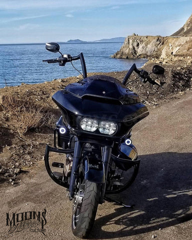 Upgrade both your front blinkers and rear brake/blinker pods with our top quality, bright LED MoonPods™. These replace your halogen bulbs with bright, new technology LED lights! The blinkers have a white running light with an amber center when you hit the blinker. The white halo stays illuminated when you hit the blinker.