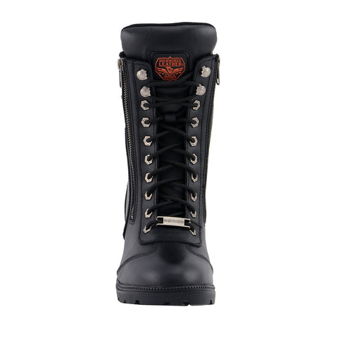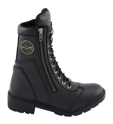 Milwaukee Leather MBL9301 Women’s Black Lace-Up Boots with Side Zipper Entry