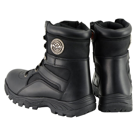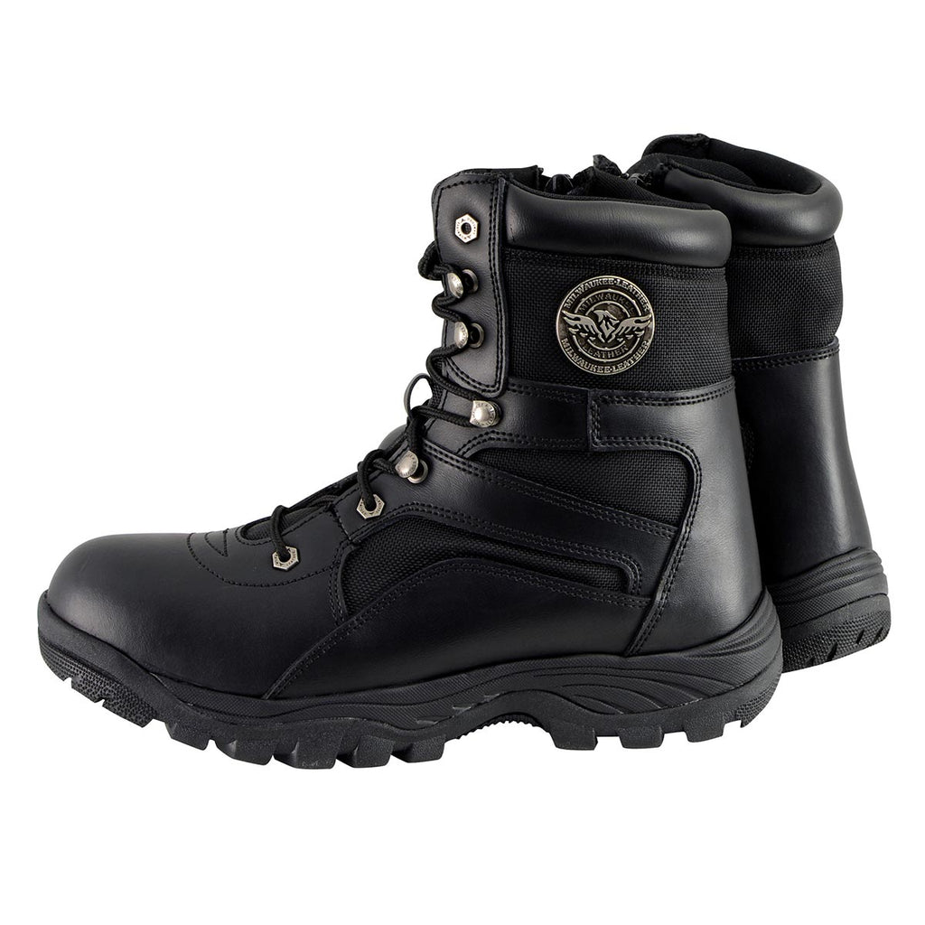 Take on Any Mission in Tactical Boots from Milwaukee Leather Performance Apparel. These Boots Feature a Leather and Nylon Upper with Plain Toe Design and Side Zipper Access. A Lace Up Front Allows for A Secure Fit, While the Anti Slip and Oil Resistant Outsole Provides Excellent Traction No Matter the Terrain. Step with Confidence with Footwear from Milwaukee Leather Performance Apparel.