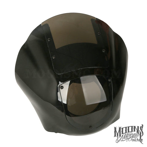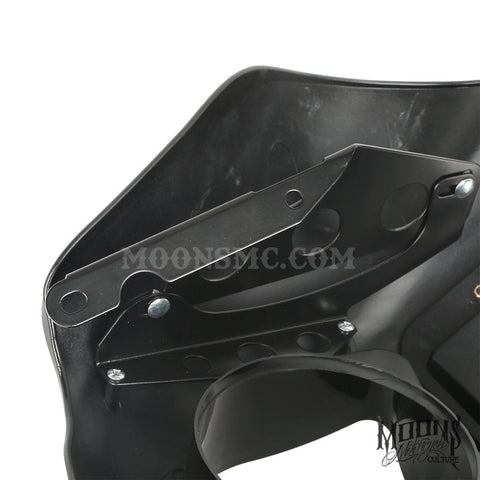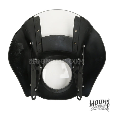 The MOONSMC® quarter fairing kit for is made out of strong ABS plastic with a plexiglass windshield and also includes the side brackets for mounting.