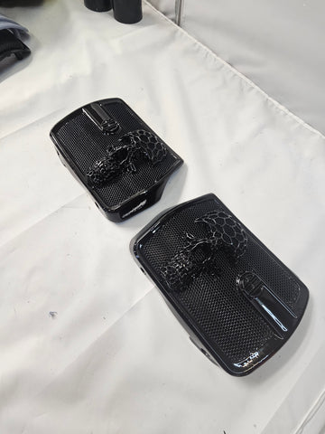 Introducing our revolutionary 3D speaker covers that seamlessly accommodate speakers of all sizes. Each cover is meticulously crafted to order, tailored exclusively for you, with a production timeline of approximately three weeks. Personalize your experience with a spectrum of color combinations, and we cater to any bike's year or make. Order verification ensures precision before production.