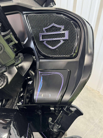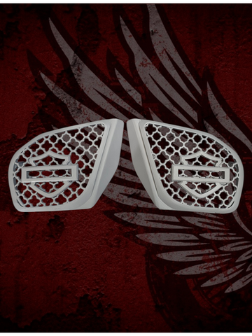Introducing our revolutionary 3D speaker covers that seamlessly accommodate speakers of all sizes. Each cover is meticulously crafted to order, tailored exclusively for you, with a production timeline of approximately three weeks. Personalize your experience with a spectrum of color combinations, and we cater to any bike's year or make. Order verification ensures precision before production.