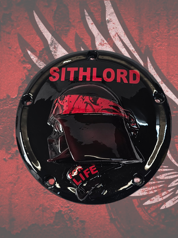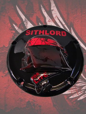 Custom built 3d Sith Lord skull on a Harley-Davidson derby cover can do any year, model or style of design. These take three to four weeks to build. Can do any color combination
