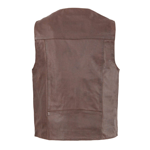 Milwaukee Leather LKM3702 Men's Broken Brown Western Style Motorcycle Leather Vest with Buffalo Snaps