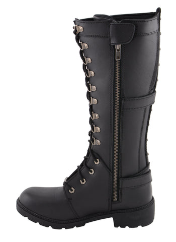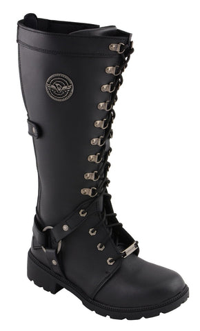 Milwaukee Leather MBL9380 Women's Black 'Jane' 15-inch Leather Combat Style Harness Boots