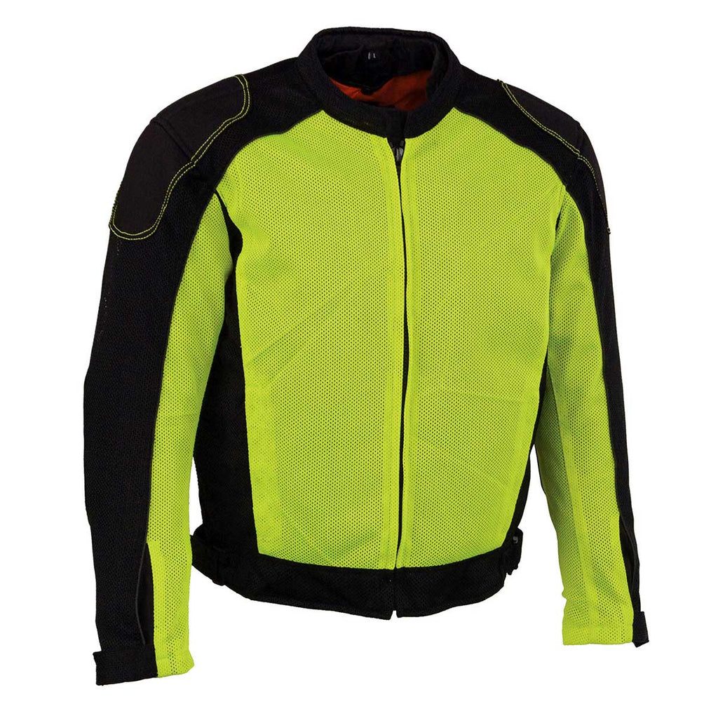 Milwaukee Leather MPM1790 Men's Black and Neon Green Hi Vis Mesh Racer Jacket